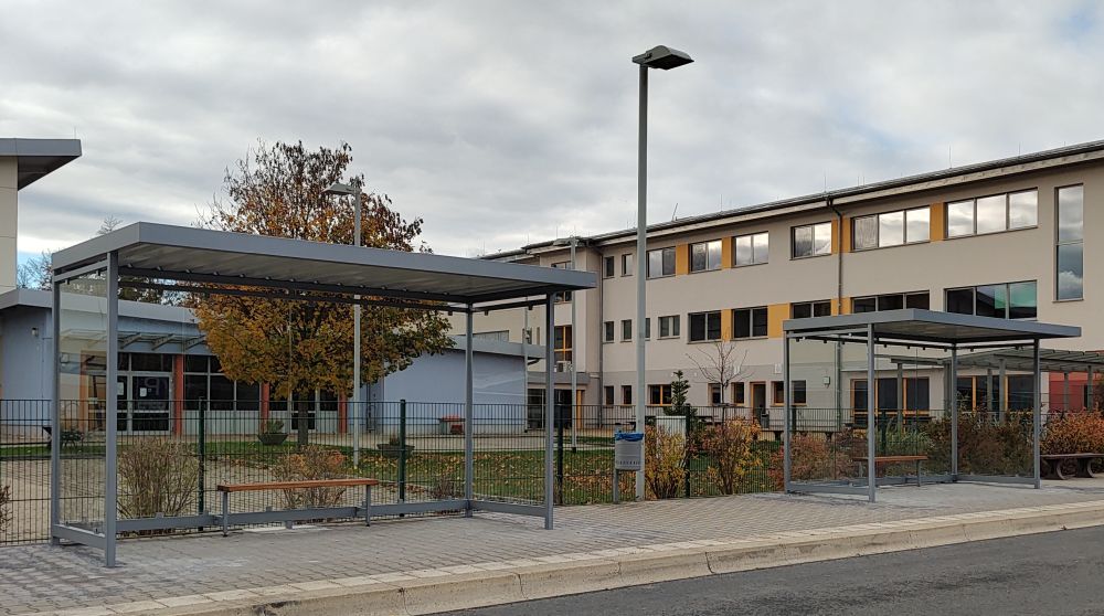 Seit den Oktoberferien haben wir endlich an der Bushaltestelle 2 Überdachungen – Buswartehäuschen. Da es in den letzten Tagen auch immer wieder regnete wurden sie gleich dankbar von unseren Schülerinnen und Schülern angenommen.