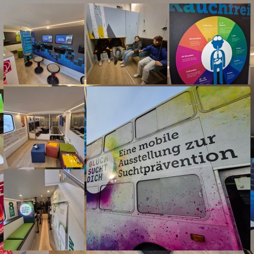 In Kleingruppen erkundeten die Schülerinnen und Schüler den Bus, probierten verschiedene Aufgaben aus, reflektierten über persönliche Ziele und Entscheidungen und kamen immer wieder miteinander ins Gespräch. Besonders beliebt waren die Bereiche, in denen man selbst aktiv werden konnte – vom Glückskompass bis zu kurzen Videosequenzen über Alltagssituationen.
