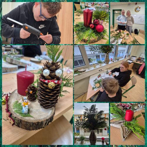 Aus verschiedensten Naturmaterialien konnten die Kinder liebevoll eigene Weihnachtsgestecke gestalten. Unsere Lehrkräfte hatten zuvor beim Vorweihnachtsputz ausgemistet – so standen uns auch viele tolle Dekomaterialien zur Verfügung. Ein besonderer Dank geht an Familie Jähnig sowie an Familie Globig für die großzügige Spende der Holzscheiben und Kerzenhalter. Dadurch wurde das Basteln für unsere Kinder noch kreativer und abwechslungsreicher.